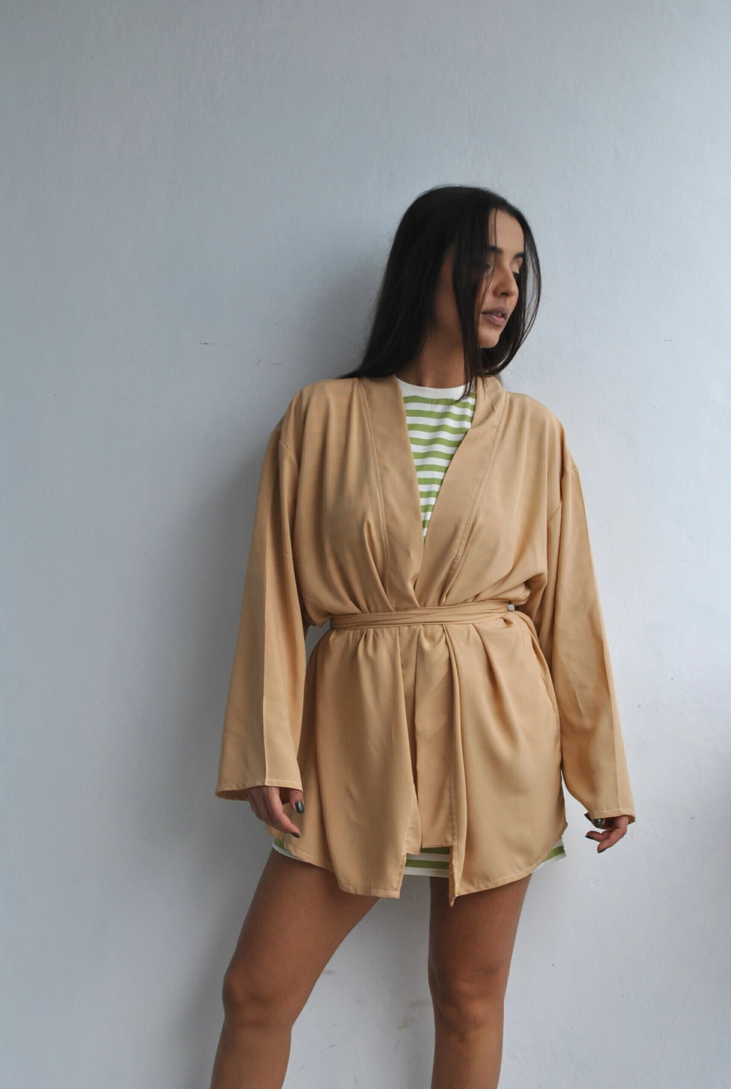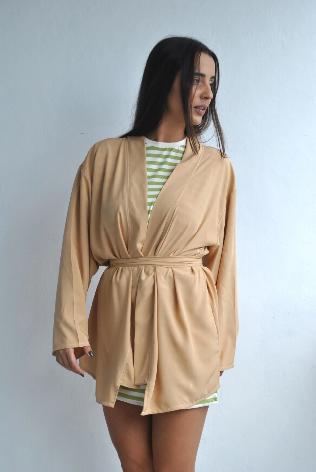 Este kimono confeccionado em 100% viscose proporciona um caimento fluido e elegante. É uma escolha versátil e elegante, perfeita para complementar uma variedade de looks.