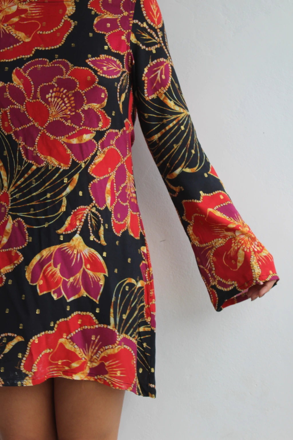 O Vestido com Abertura nas Costas e Manga Ampla é a peça que você precisava para adicionar um toque de charme ao seu guarda-roupa. Confeccionado com a estampa exclusiva da marca Farm, este vestido curto destaca-se pelo fundo preto que contrasta lindamente com as flores em tons vermelhos.